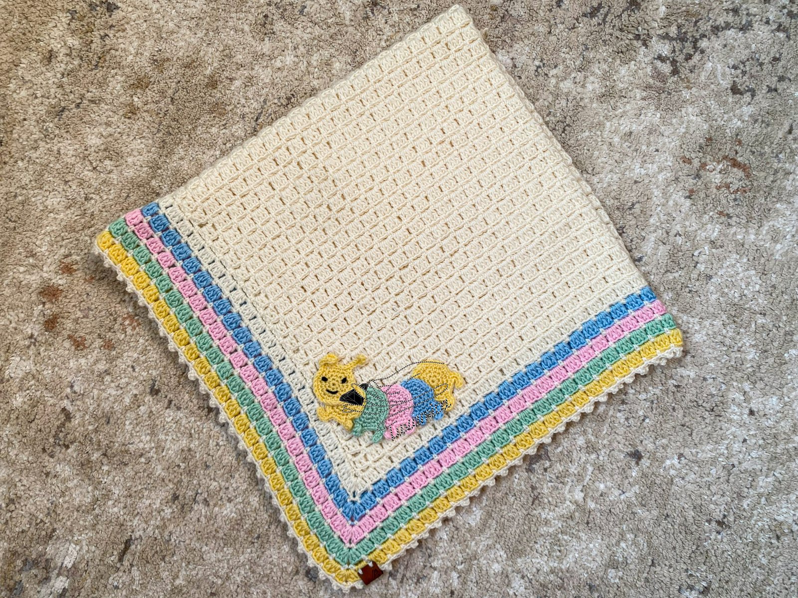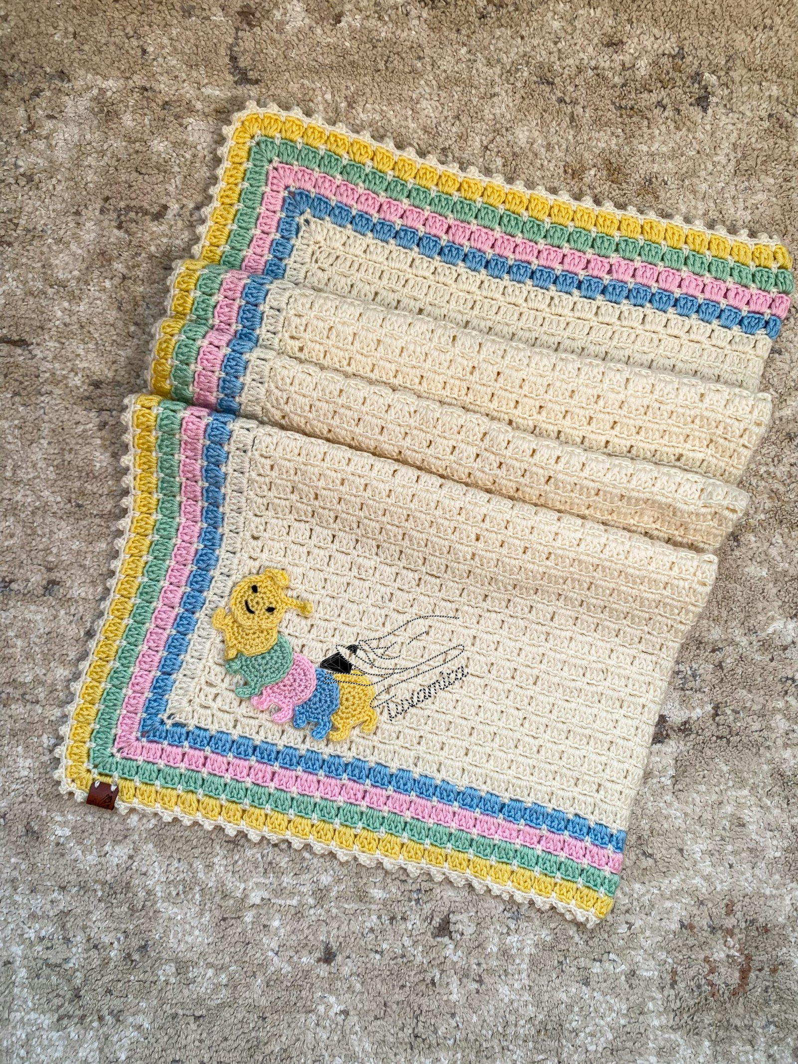 | الفنية | بطانيه الاطفال لدينا صُنعت يدويا بدقه وجوده تقفيل عاليه جدا لتقوم برسم التفاصيل الدقيقه الفريده وتلائم حركه الاطفال الكثيره, حيث تم صناعتها في 15 ساعه. |
