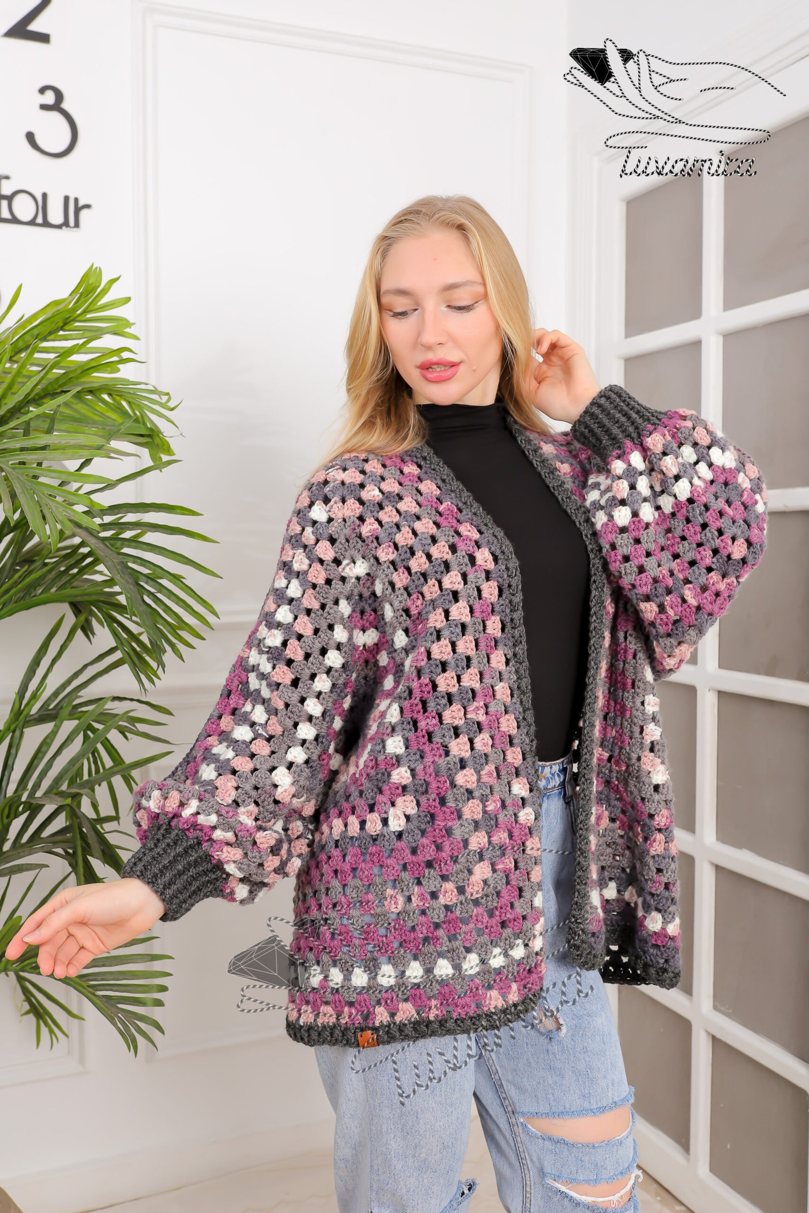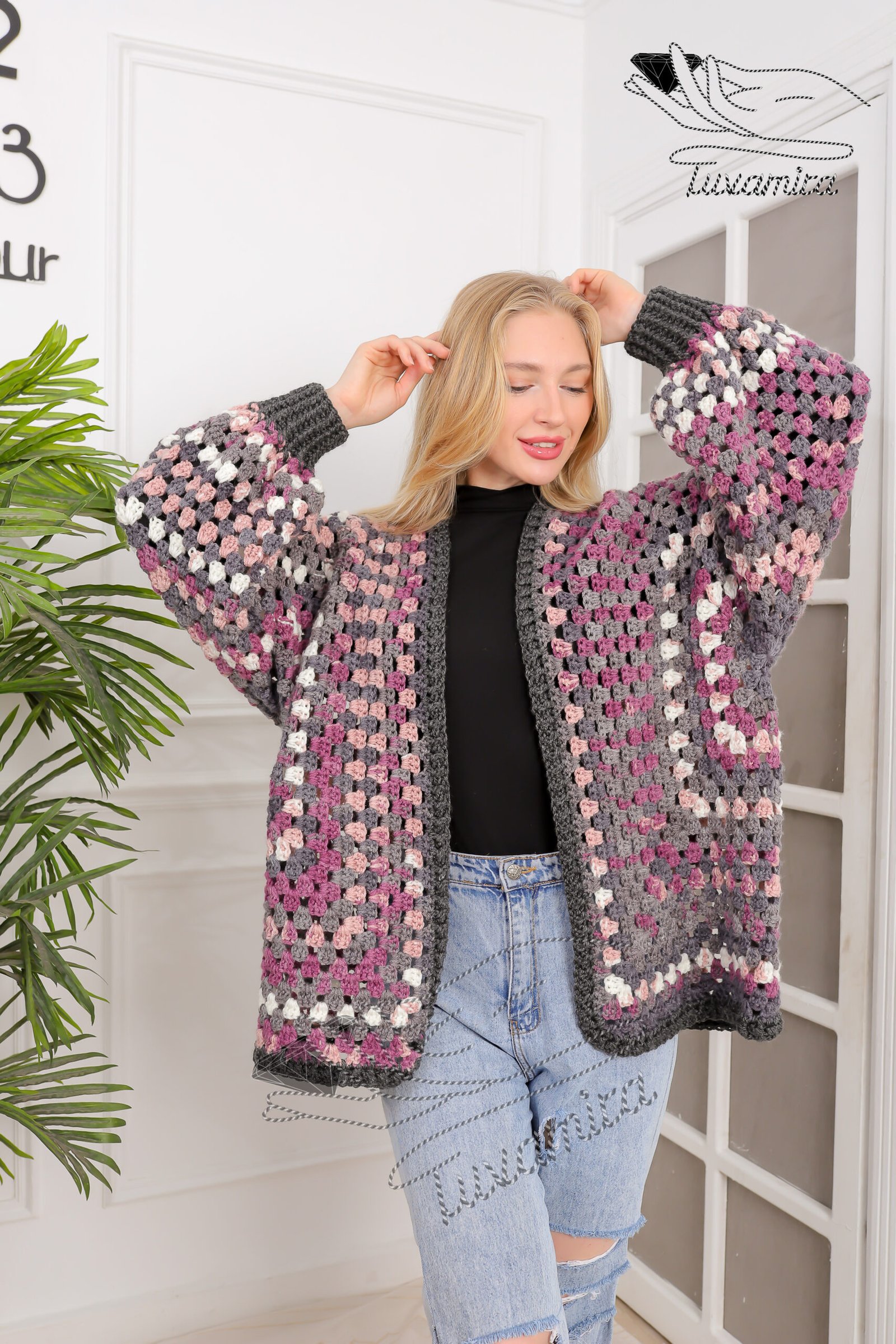 Material Tuvamira winter Crochet cardigan 100% premium acrylic wool from the finest Turkish Alize yarns first class